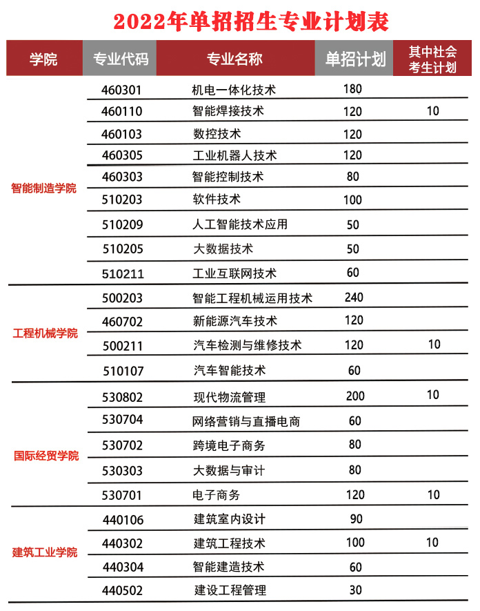 2022年单招招生专业计划表 2020年3月15日 点击次数:3114