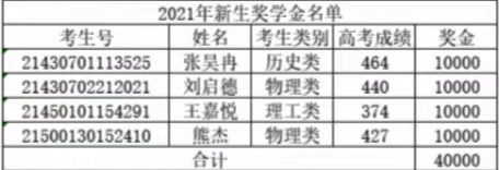 湖南三一工业职业技术学院2021年新生奖学金拟获得者名单