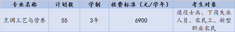 第八条 经学校研究,在烹调工艺与营养专业开展面向退役士兵高职扩招考生和下岗失业人员、农民工、新型职业农民等高职扩招考生单独考试招生工作,具体招生计划详见下表所示。