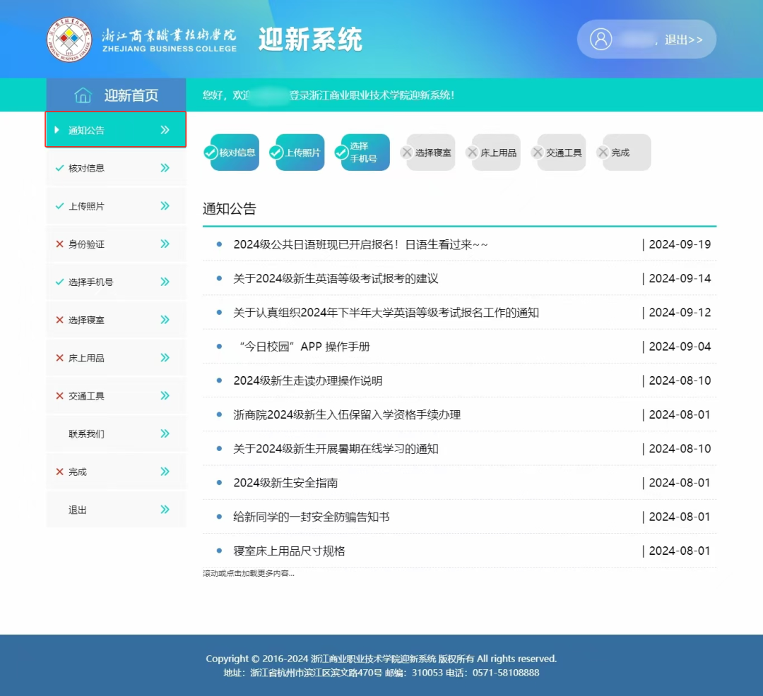 查看通知公告:有关我校2024级新生报到注意事项都将在这里发布,请大家务必仔细查看每一个通知公告。