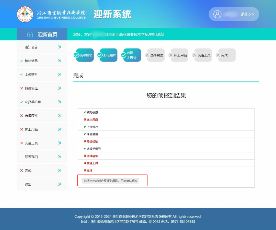 完成预报到:完成以上步骤之后,请点击“预报到确认提交”,完成预报到。