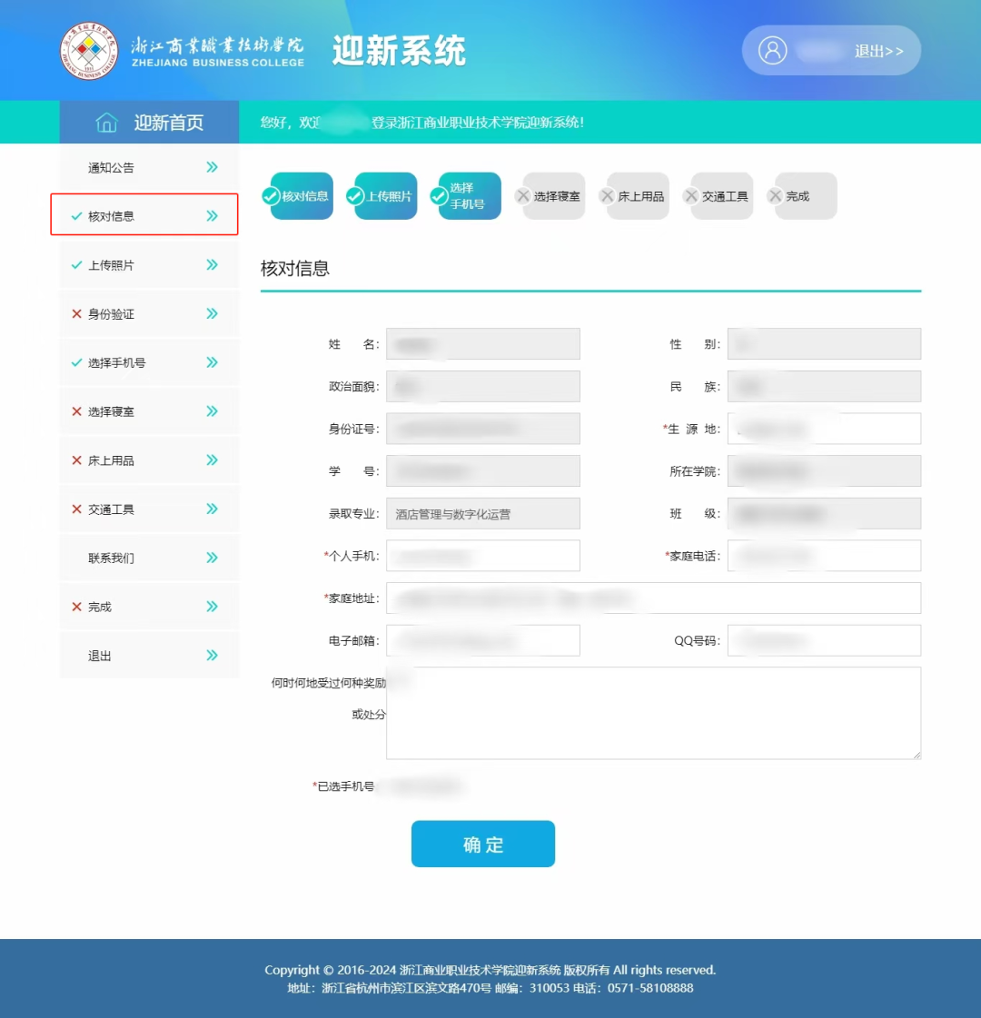 核对个人信息:请认真核对个人基本信息,如有错误请及时向招生办反馈。