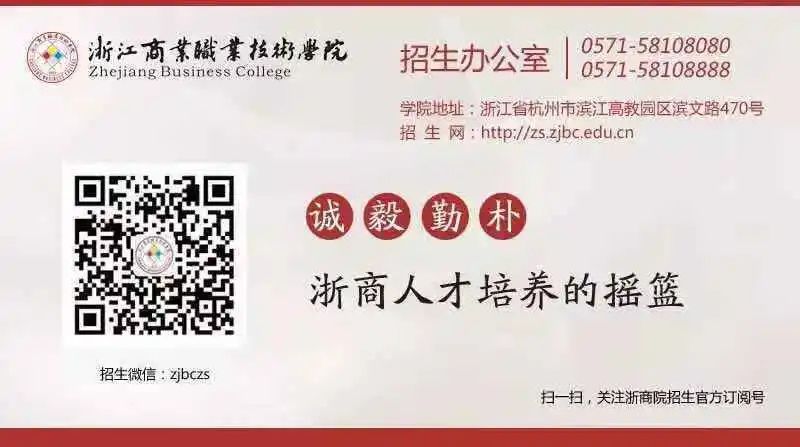 联系地址:浙江省杭州市滨文路470号浙江商业职业技术学院招生就业处