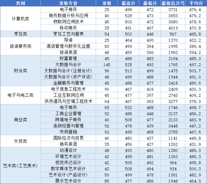 浙商院2024年浙江省单独考试分专业录取投档分数线