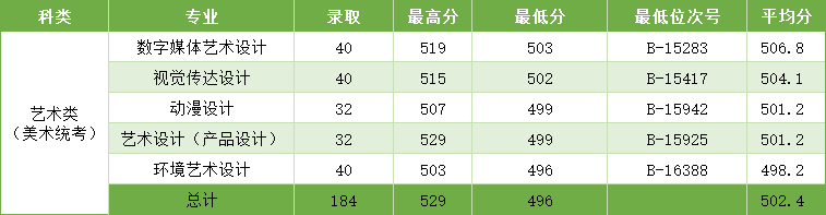 浙商院2024年浙江省艺术类(美术统考)分专业录取投档分数线