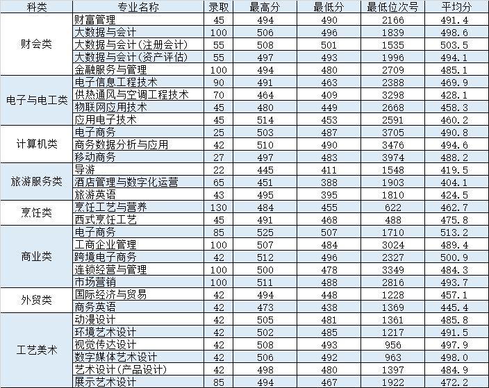 浙商院2023年浙江省单独考试分专业录取投档分数线