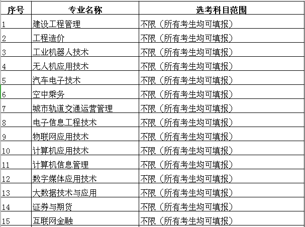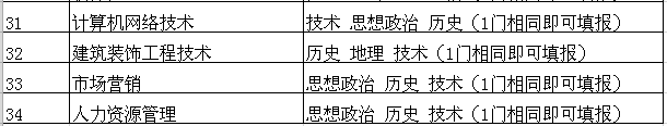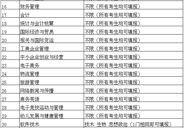 第十一条 浙江省统一高考各招生专业选考科目范围如下表: