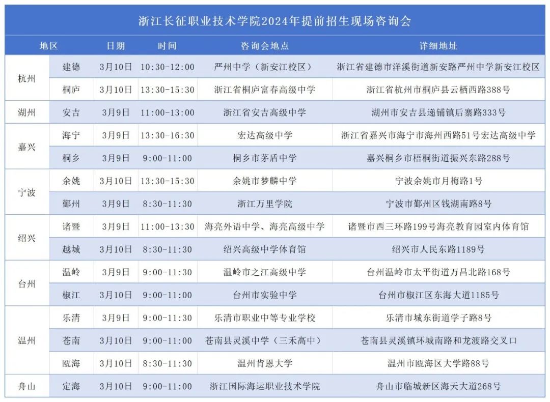 2024年高职提前招生正火热报名中,为了更好地服务广大考生及家长,浙江长征职业技术学院诚邀您参加我们的线下咨询会,面对面交流,解答您关于学校、专业、志愿填报等方面的疑惑。