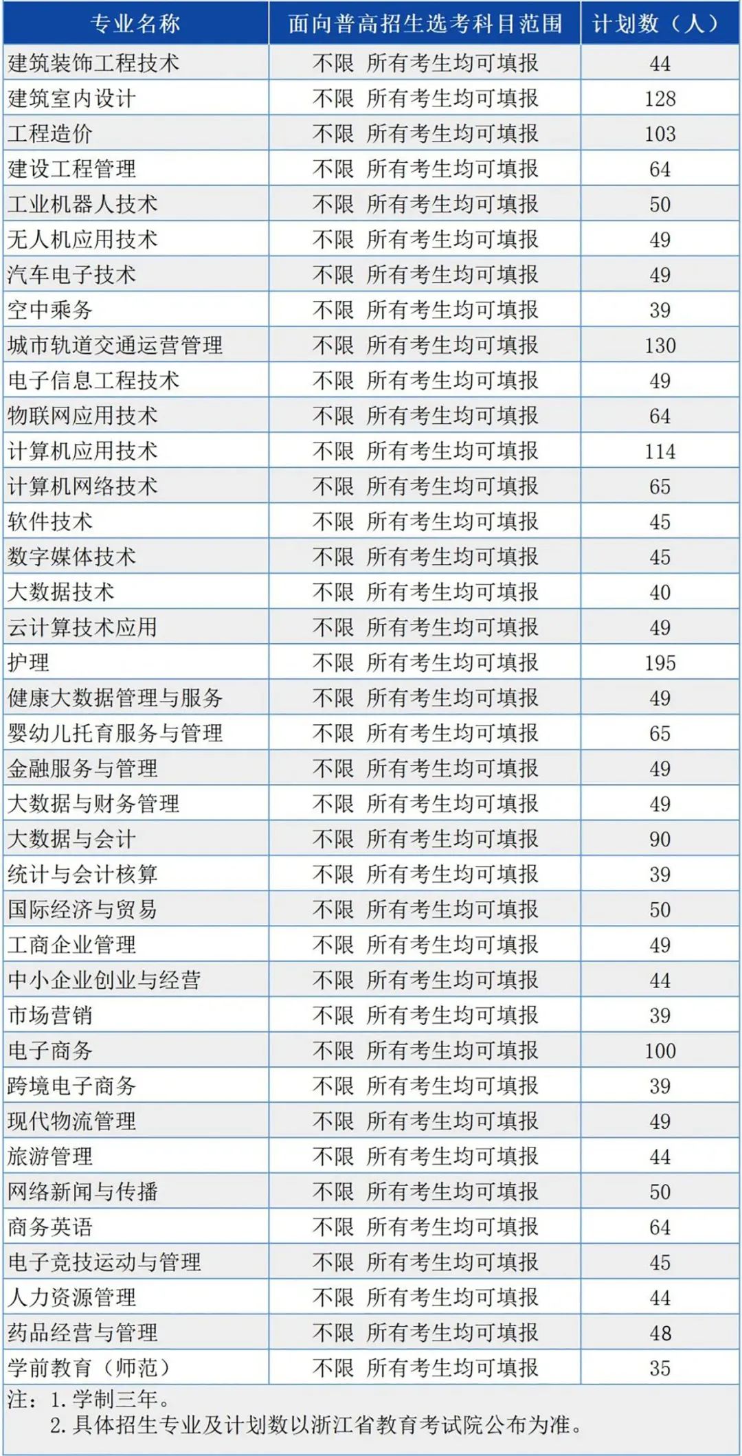 广受考生关注的护理、城市轨道交通运营管理、建筑室内设计、工程造价、计算机应用技术、大数据与会计、电子商务等专业,招生计划量都比较大,能满足考生希望被这些专业录取的需求。