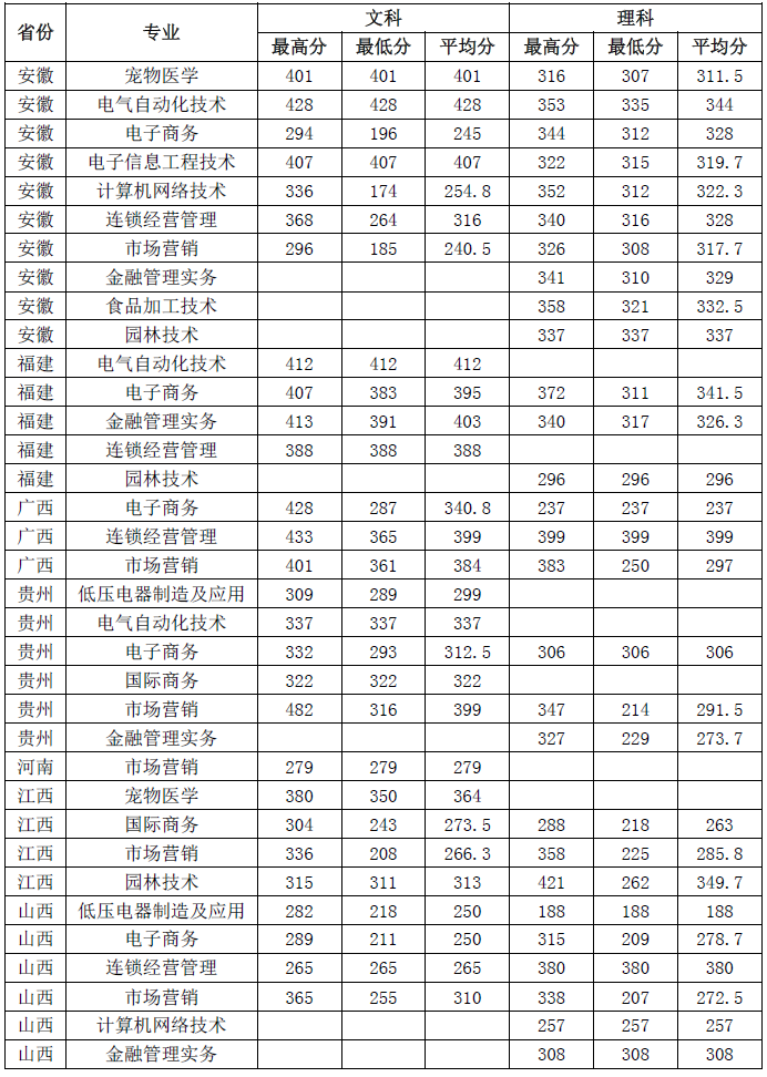 6 | 园艺技术 | 355 | 330 | 335.8 | 339 | 309 | 315.4 |