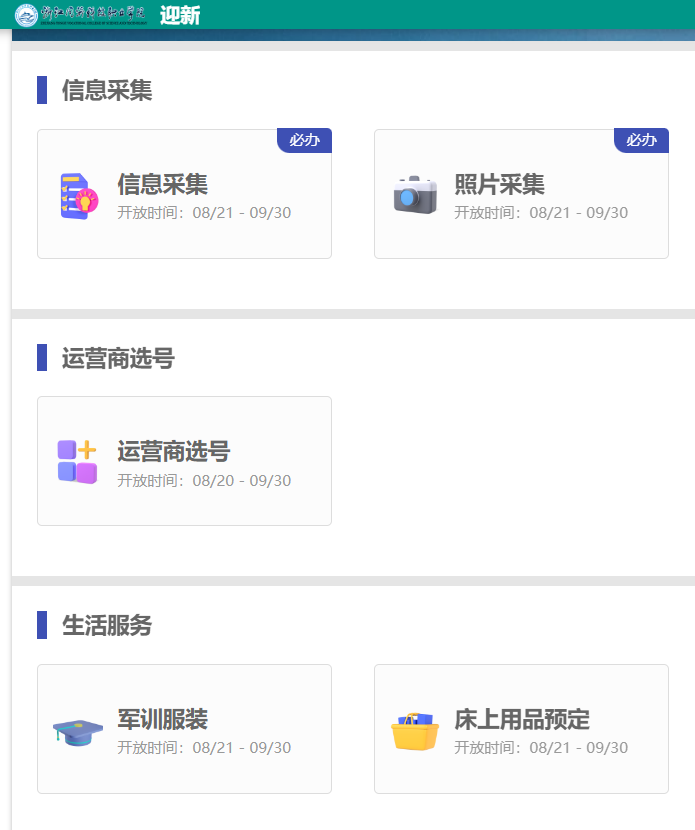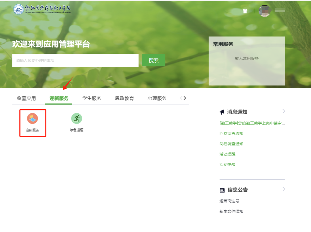 登录完成后,可选择迎新服务进入到线上报到界面。