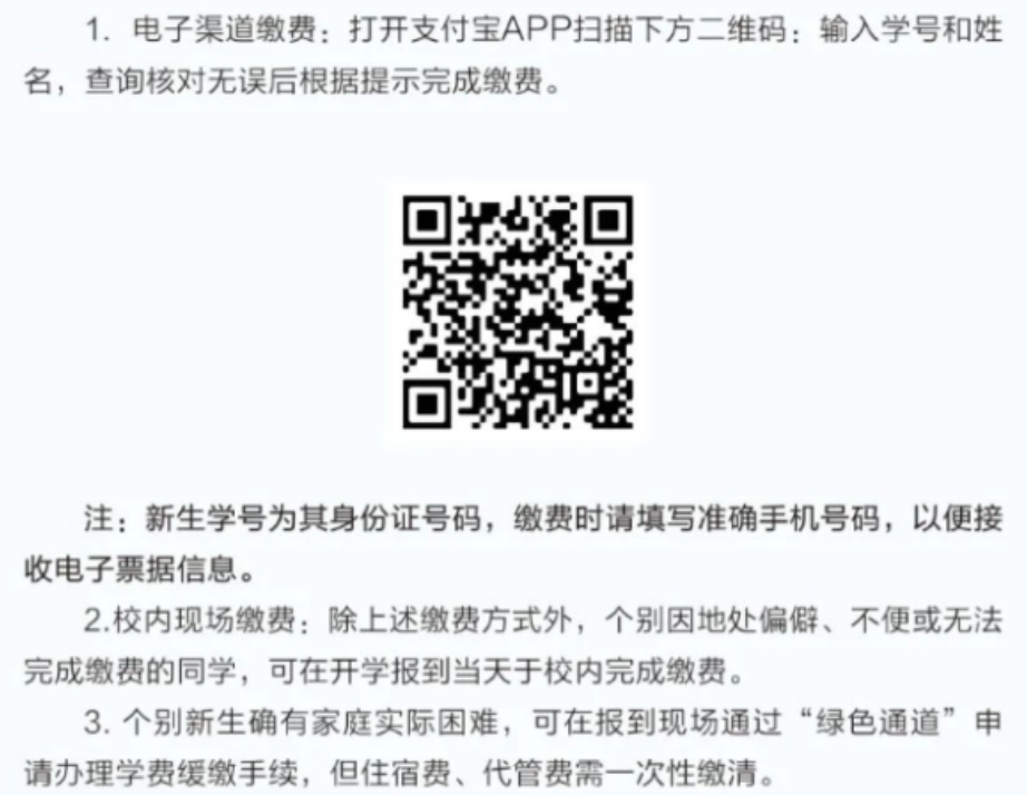新生需在开学报到前完成相关缴费,缴费方式见下图。