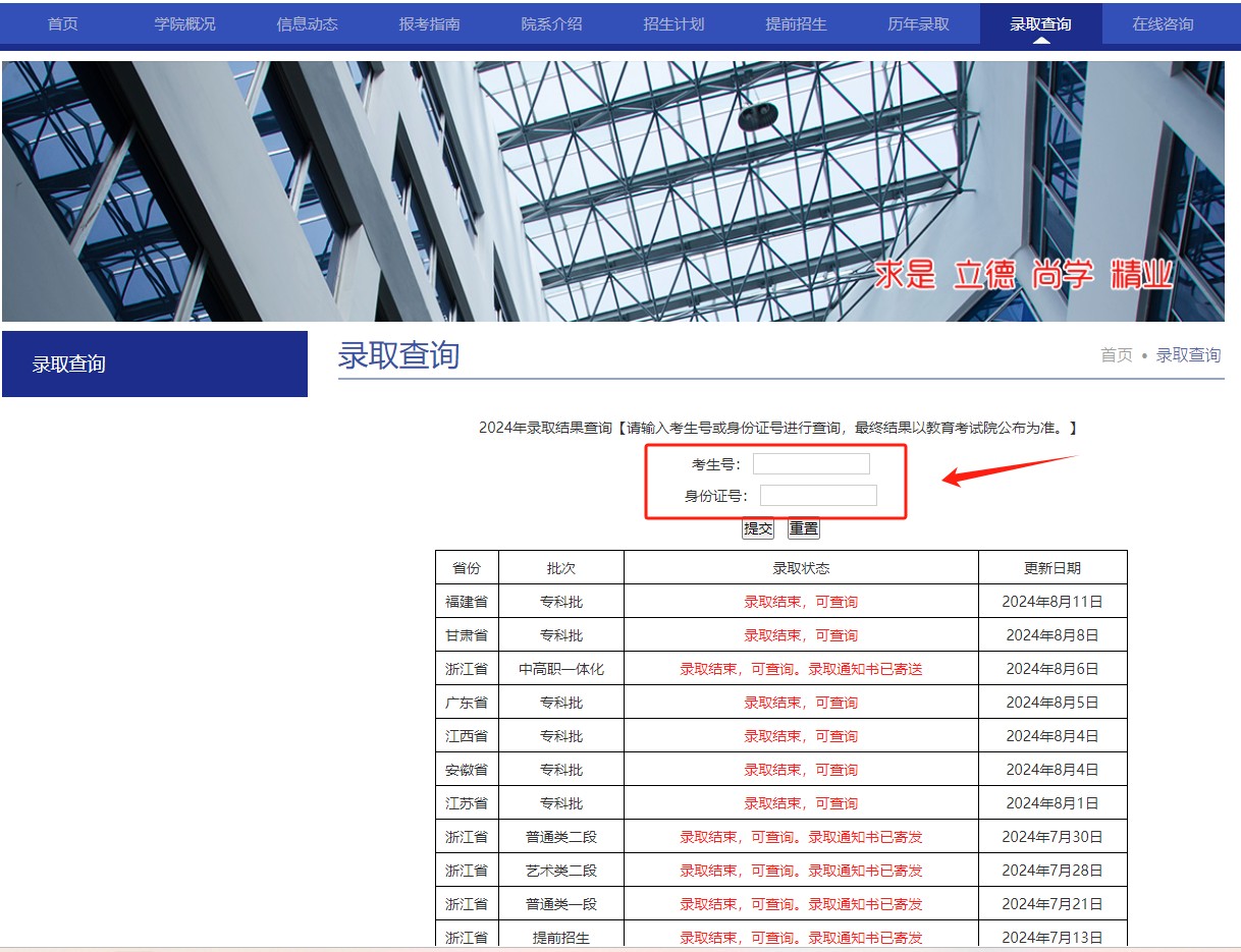 点击录取查询模块。