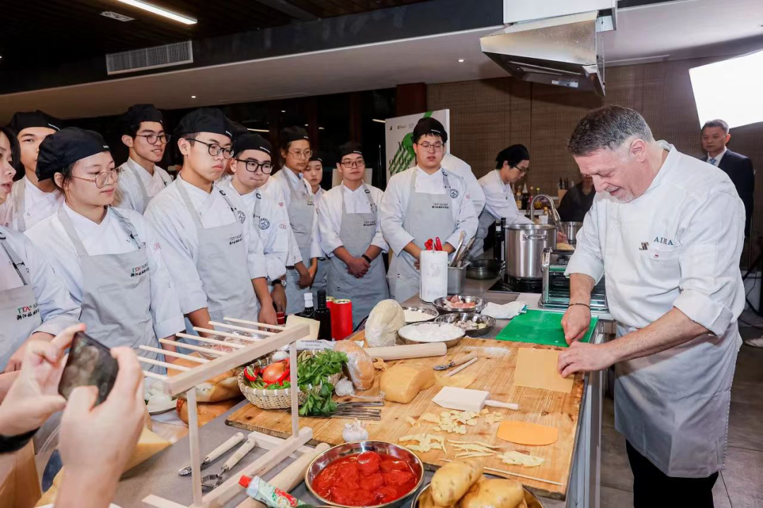 学生参加意大利对外贸易委员会主办的烹饪工坊活动