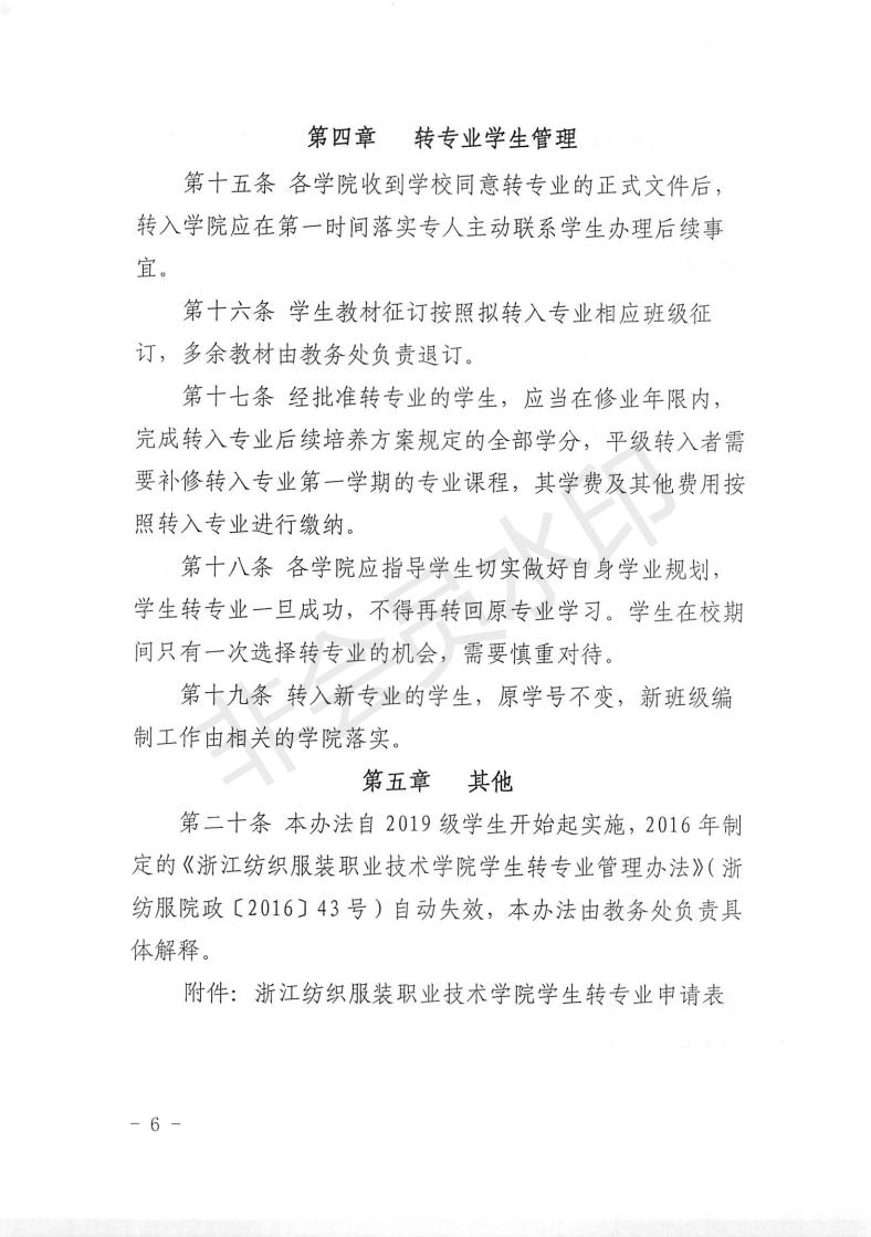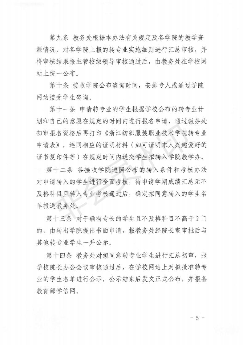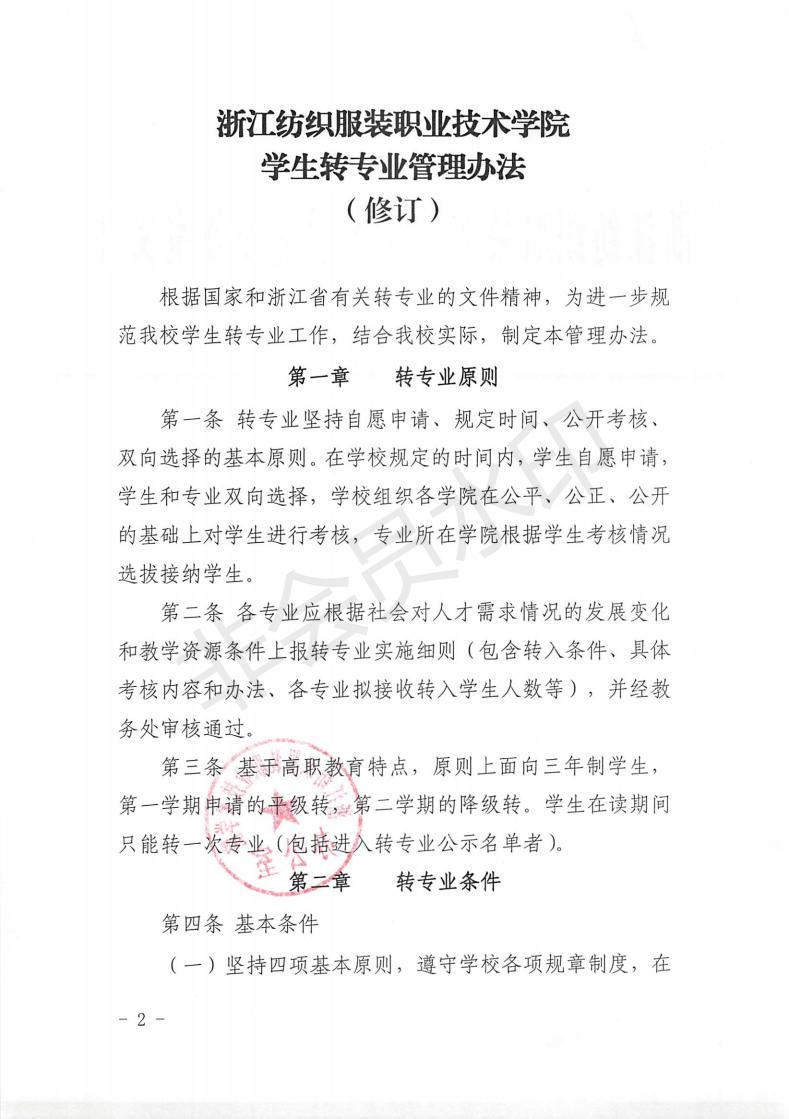 学生转专业管理办法(修订)(浙江纺织服装职业技术学院)