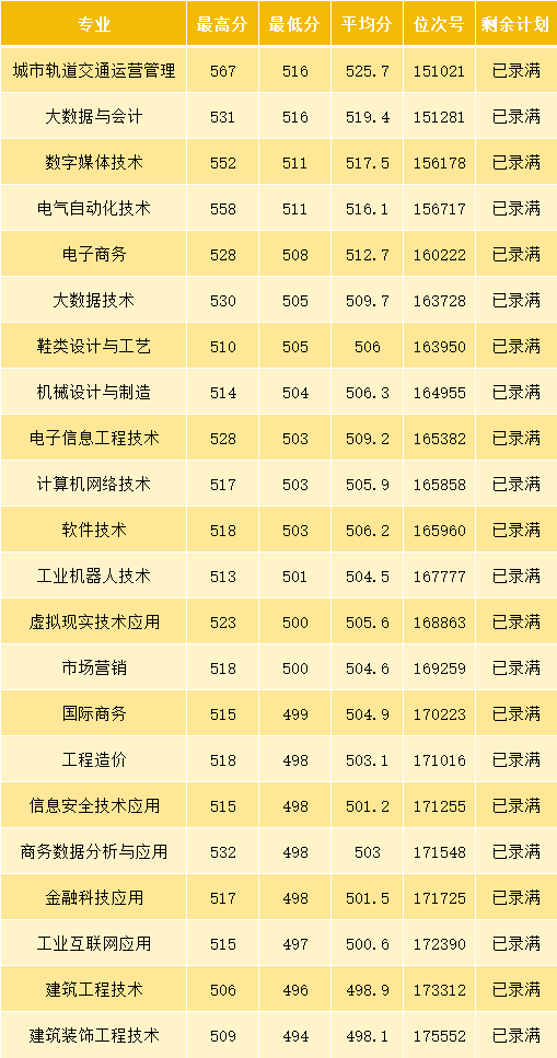 学校实行宽松的转专业政策,充分尊重学生意愿,允许学生进校第一学期末根据学籍管理规定申请转专业。建议分数在普通类二段线以上的考生大胆填报我校还有剩余计划的专业,并尽量靠前填报。·剩余计划专业介绍