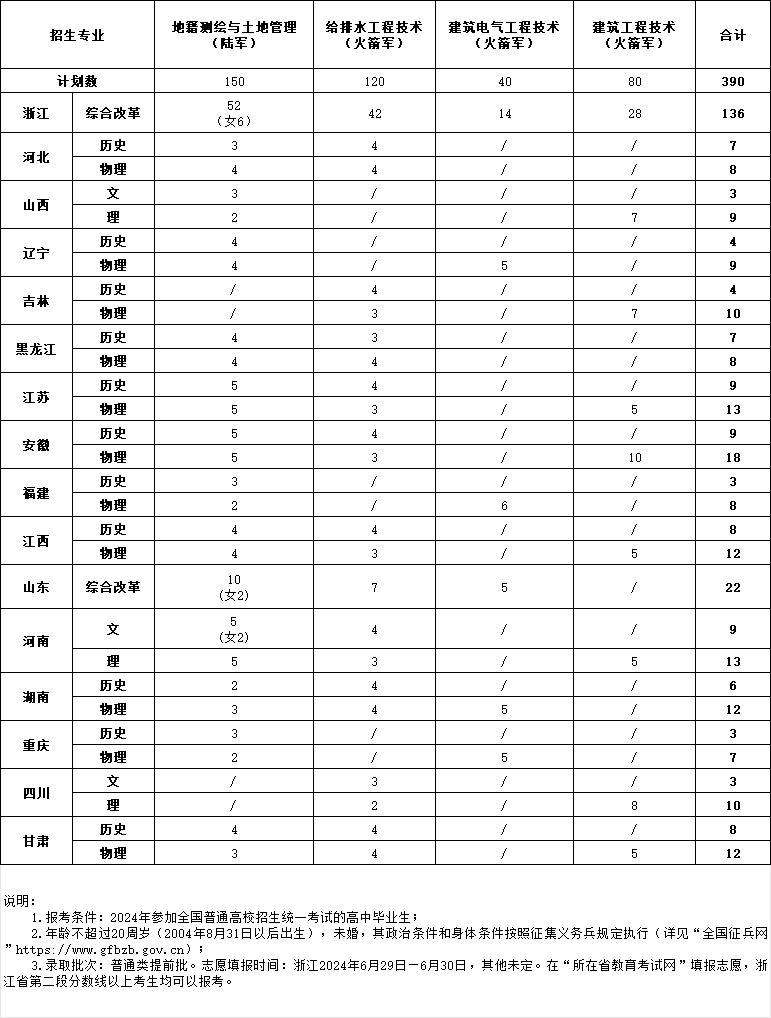 浙江建设职业技术学院2024年定向培养军士招生计划