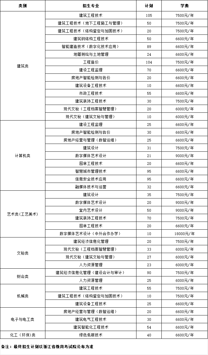 浙江建设职业技术学院2024年浙江省单独考试招生计划.xlsx