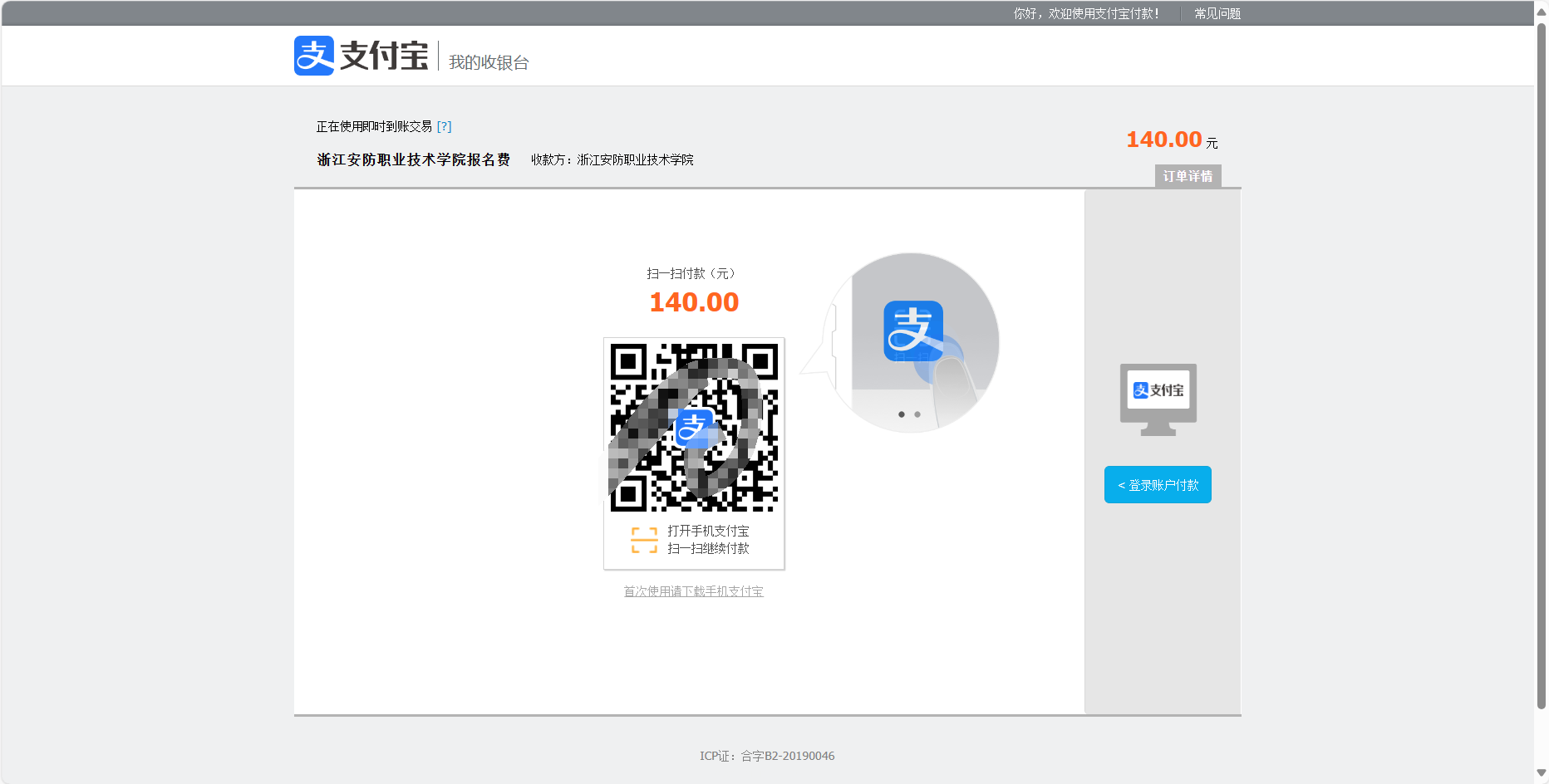 二、缴纳报名费(140元/人)