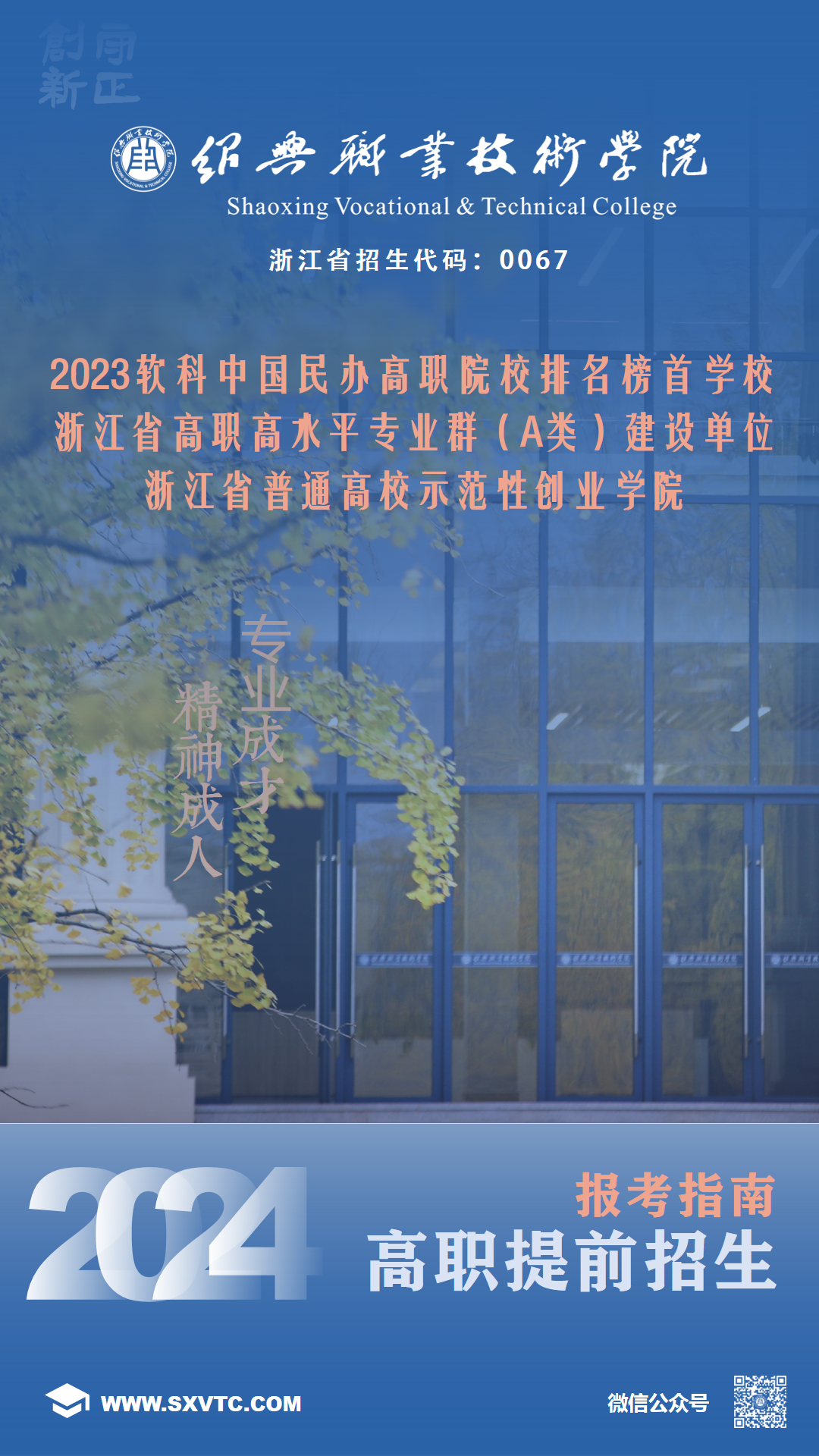 ▲绍职院宣传片▲绍职院美育中心落成和“舞雩风”鲍贤伦、沈伟、陈建明书法作品展纪实▲绍职院樱花季▲绍职院之夏