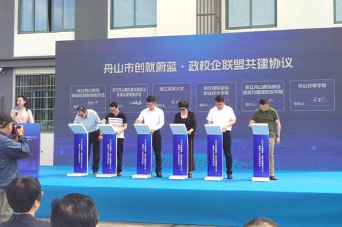 为促进高校毕业生留舟就业创业,推动本土企业人才引进和技能提升,推进海岛乡村共同富裕以及乡村振兴,6月9日上午,舟山市“创就蔚蓝”政校企联盟成立大会在定海区小沙街道三毛文化村乡创基地隆重举行。