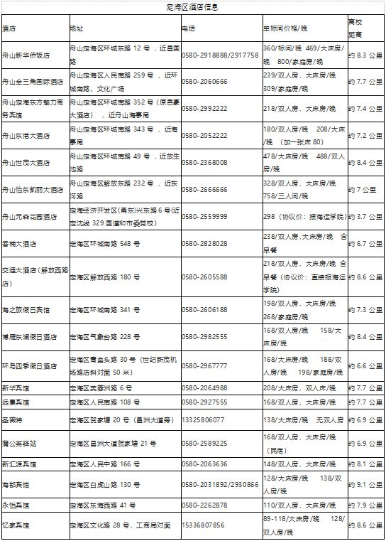 1、上述酒店信息仅供参考,考生可自行上网比价;
