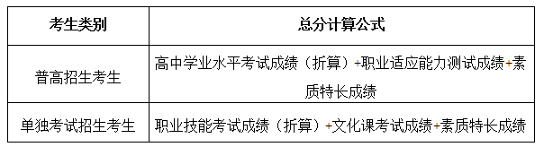 浙江省考生的高中学业水平考试(会考)中相关科目以浙江省教育考试院会考主管部门提供的相关成绩信息为准,外省转入我省考生的学考成绩,已经过浙江省教育考试院认定的,我院予以认可,并按浙江省教育考试院认定成绩统计。(三)职业技能考试成绩计算(100分)单独考试招生考生职业技能考试成绩满分为100分(根据中职全省职业技能统一考试取得的成绩,满分300分,折算成100分计算)。(四)职业适应能力测试、文化课测试方法考生参加职业适应能力测试、文化课测试务必携带盖有我院教务处印章的准考证、身份证或《普通高校招生报名证》方可参加考试。具体事项如下:1.普高招生考生(1)职业适应能力测试时间:2018年 4 月 22 日(2)测试地点:浙江汽车职业技术学院(3)测试形式:面试学院按照招生专业成立职业适应能力测试考评组,考评组由5位考评人员(设组长1名)组成,考评人员在学院纪检监察组的监督下从专家库中随机抽取,考评组根据测试方案对考生进行逐个测试,并由学院纪检监察部门全程监督。(4)测试评分:职业适应能力测试成绩占100分。2.单独考试招生考生(1)文化课测试时间:2018年 4 月 22 日(2)测试地点:浙江汽车职业技术学院(3)测试形式:笔试(4)考试科目:语文、数学(5)考试内容:2018年高等职业技术教育招生考试大纲规定的内容。(6)考试评分:文化课成绩满分100分。语文、数学卷面分数均为100分,最终根据文化课成绩折算公式分专业折合计算。文化课成绩折算公式如下表:
