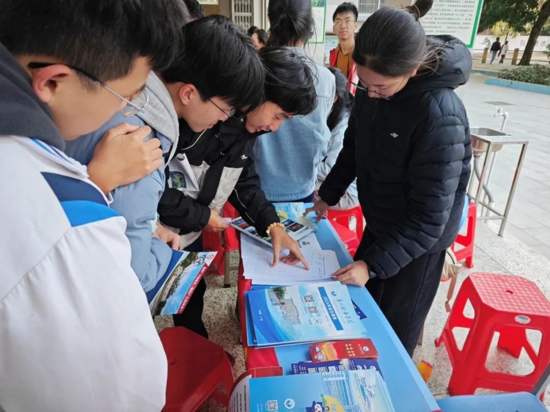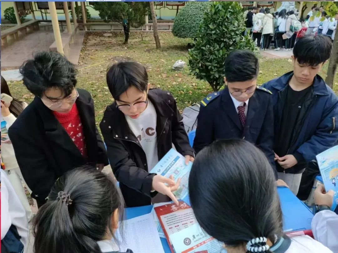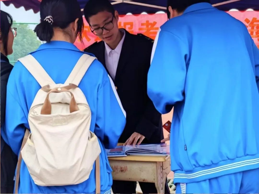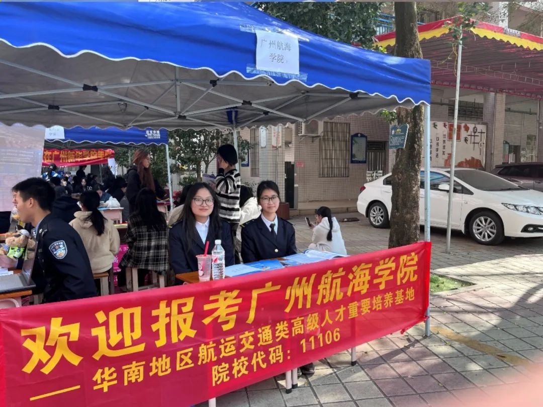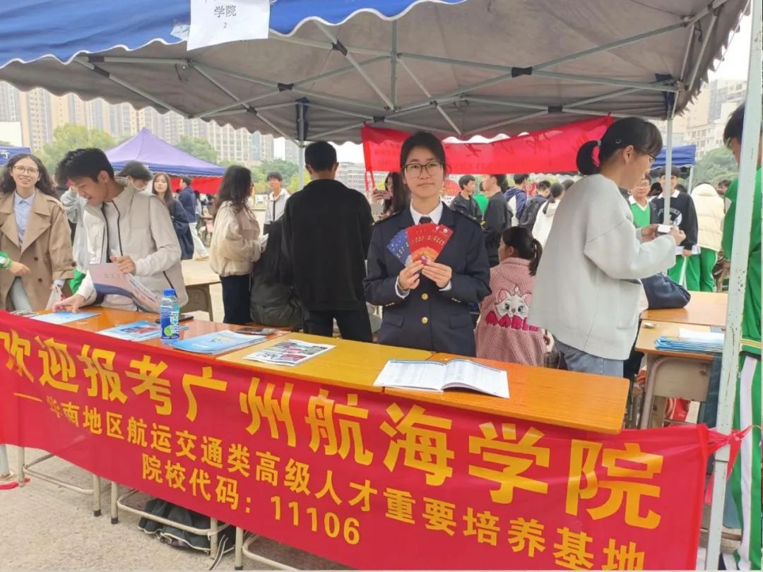 活动期间,茂名各高中校园内人头攒动,气氛热烈。广州航海学院的宣传摊位成为现场焦点,精心设计的展台、丰富的宣传资料以及醒目的横幅吸引了众多学生驻足。宣传队员们热情洋溢,通过生动的讲解和互动,向学弟学妹们详细介绍了广航的特色专业、校园文化以及最新的招生政策。从前沿的航海技术到深厚的人文底蕴,广航的多元魅力深深打动了在场的每一位学子。