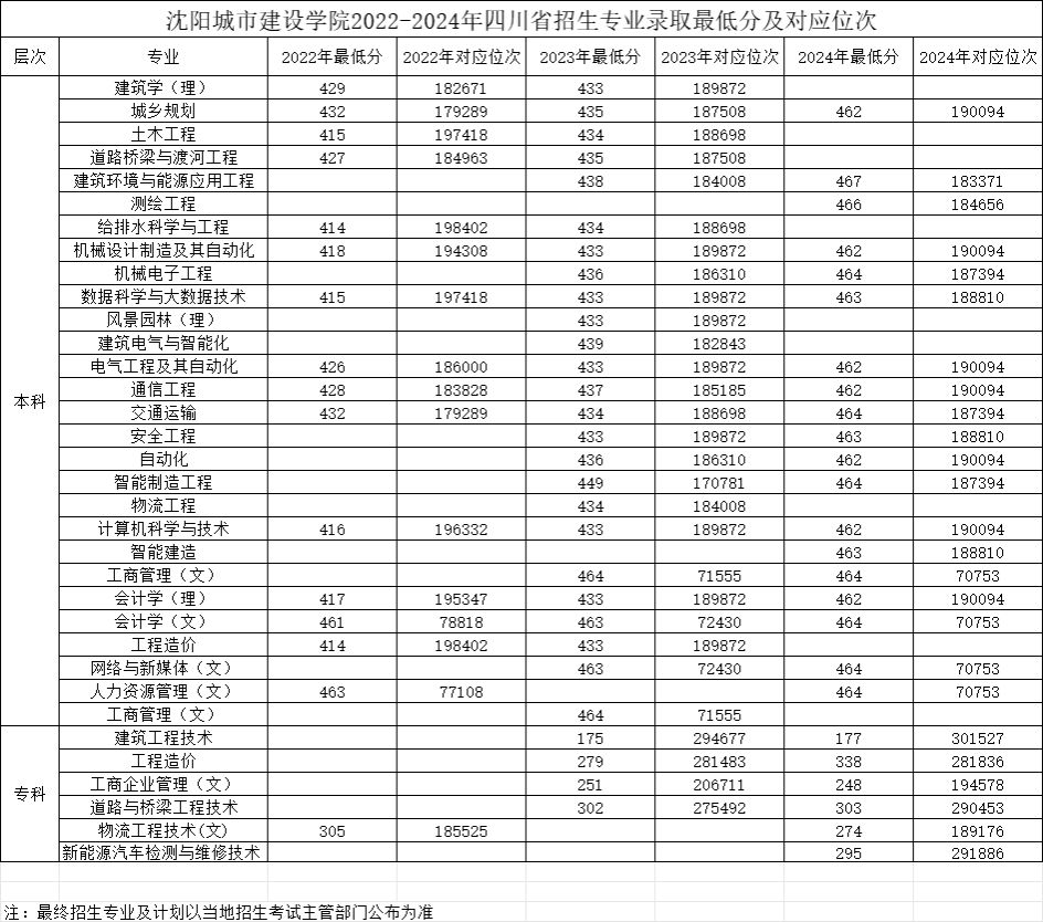 四川2022-2024年招生专业录取最低分数线及对应位次