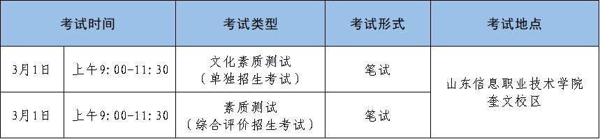 专业技能测试:由山东省教育招生考试院统一组织考试,考试时间、地点请关注山东省教育招生考试院官方网站。