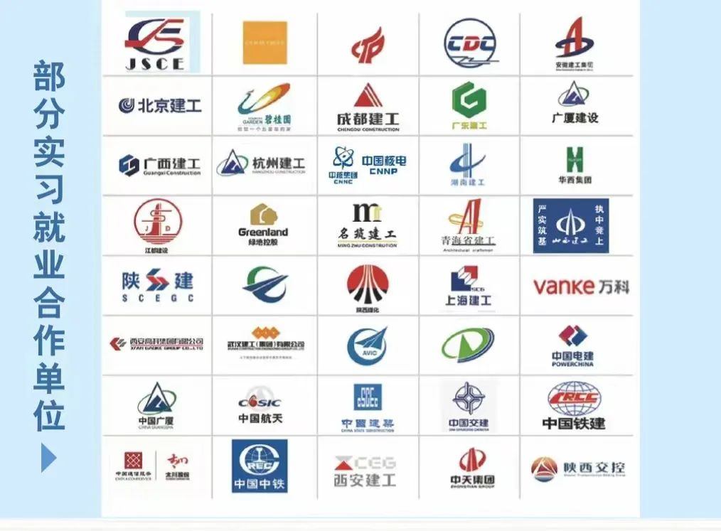 校与陕建、中建、中铁、西安建工、西安市政、陕西交控、西安地铁、万科等几十家行业内知名企业建立了长期稳定的就业合作关系,与海内外多家龙头企业合作,共建校内外实训基地,与陕建集团旗下各企业签订《订单式人才培养协议》。