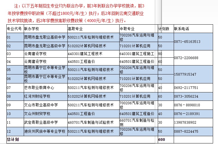 2022年五年制高职(专科)拟招生计划(联合办学)