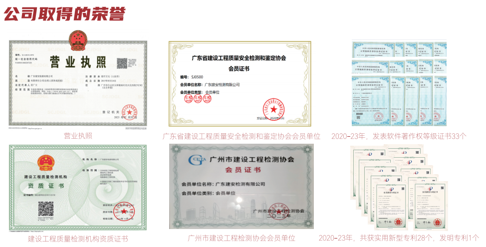 · 广东建安检测有限公司·广东建安检测有限公司成立于2015年5月,注册资本1000万元,是一家具有独立法人资格的建设工程检验检测机构。公司办公及试验场地建筑面积约5000平米。包含功能完善的受理大厅、力学试验室、土工集料室、土工试验室、水泥试验室等,公司拥有各类先进检测仪器设备1000余套,目前经过CMA计量认证项目参数达4000+,现有人才近100人。