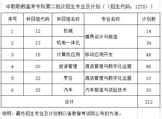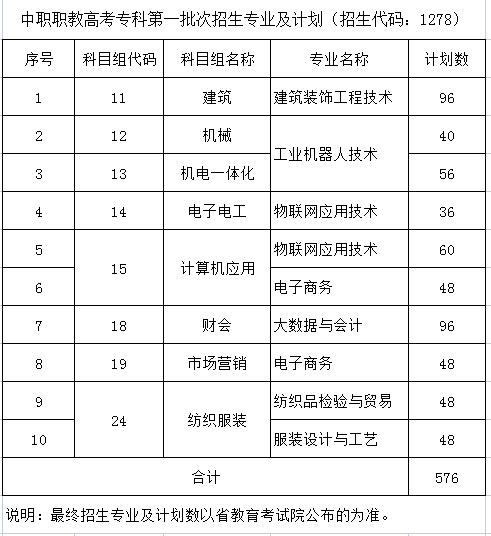 沙洲职业工学院2023年中职职教高考招生专业及计划
