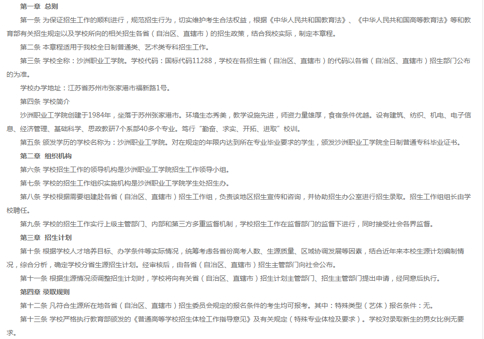 沙洲职业工学院普高统招招生章程 (2021年实行)