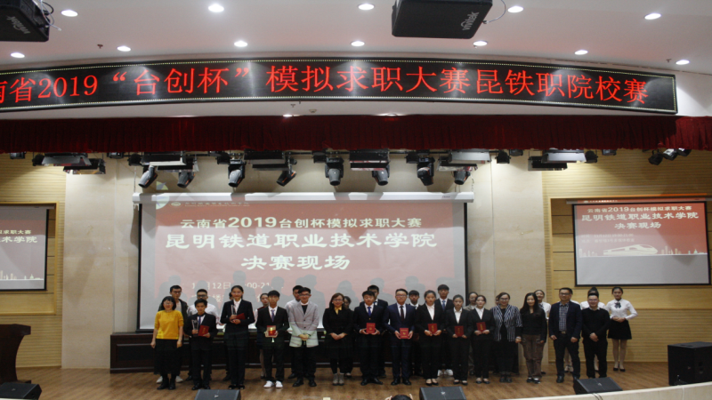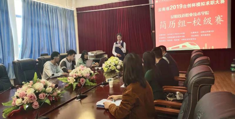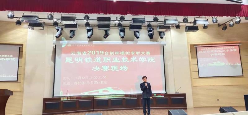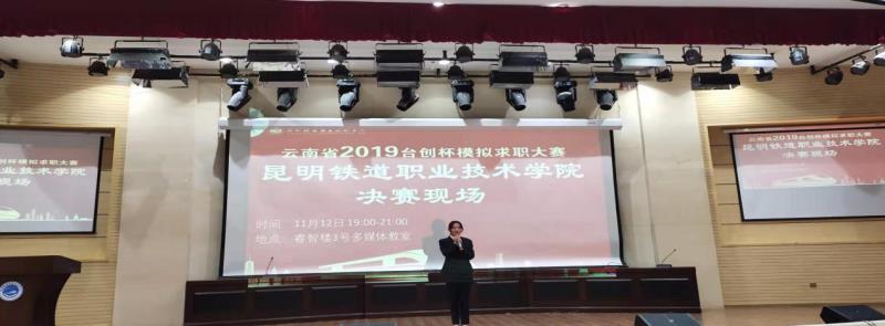 2019年11月12日晚,云南省2019年“台创杯”大学生模拟求职大赛暨昆明铁道职业技术学院校级赛在学院睿知楼报告厅举行,本次大赛由学院招生就业处承办,院团委、各系部、学院社团创客协会协办,历时一个多月,经过简历筛选、各系部初赛等环节,最终8名选手进入决赛。