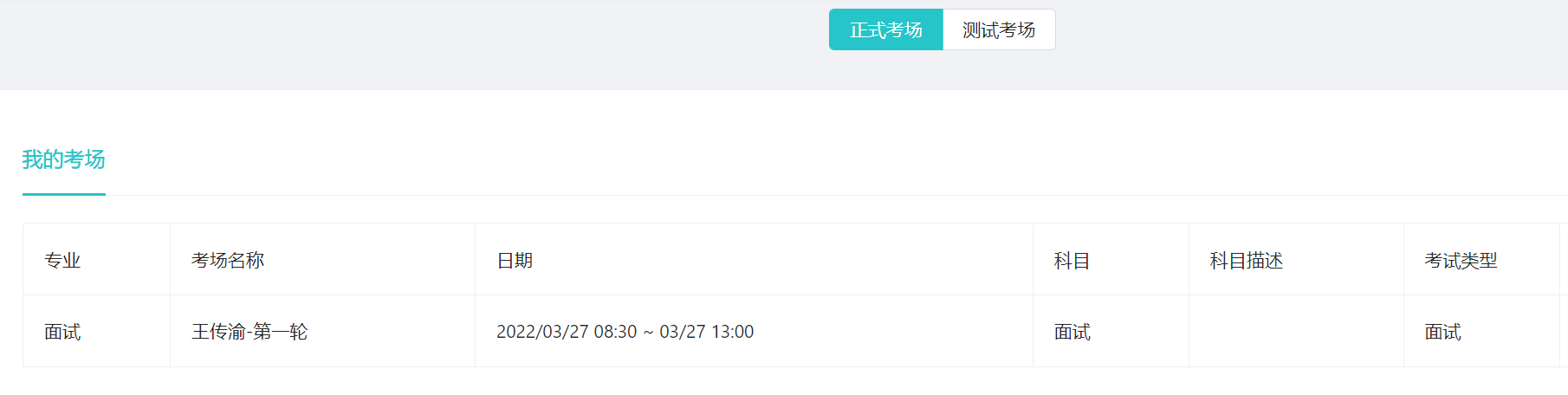 f.点击进入考场按钮,考生会从候考区切换到考场进行面试