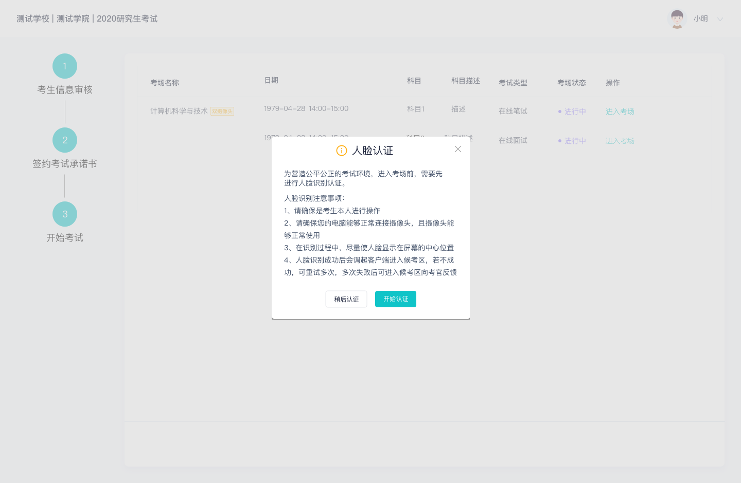 a.若该科目开启了人脸识别,则需要进行人脸识别认证,没有开启人脸识别则不会显示