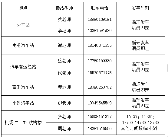 注:以上六个站点接站处均有我校老师、志愿者为大家服务。请与持有“四川汽车职业技术学院”标志的工作人员联系,切勿轻信他人,以免上当受骗。