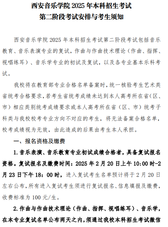 更多内容:西安音乐学院2025年本科招生考试第二阶段考试安排与考生须知(点击查看)