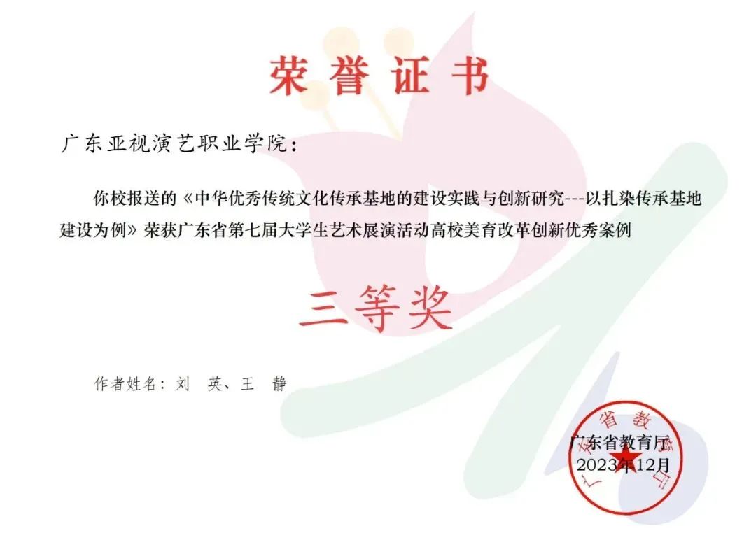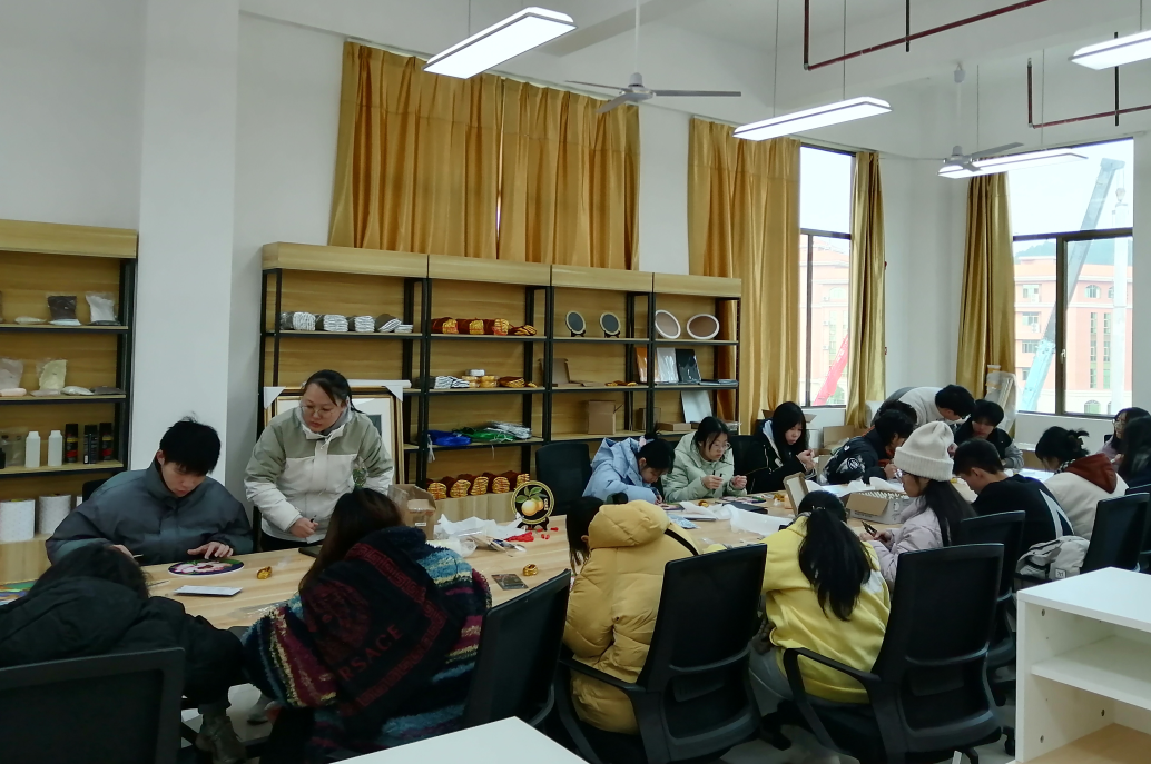 同时,学院被中国纺织服装教育学会授予产学研创新研发基地;广府金绣项目落地,成立“蕙质兰心”绣艺工作室;服务国家“百千万工程”及“乡村振兴”战略,与学校德庆县官圩镇金林水乡、永丰镇、马圩镇结成对子,服务于当地经济发展及人才培养。