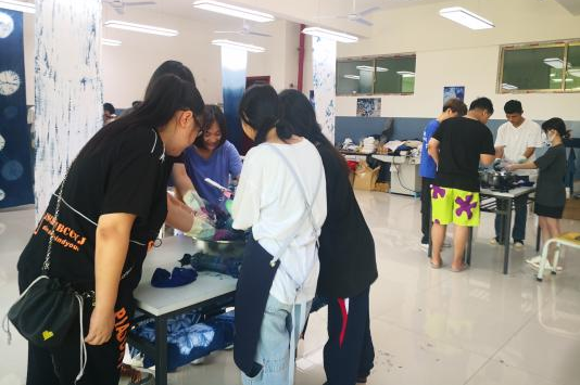 蓝染工坊专注于传统蓝染技艺的教学与实践,让学生深入了解这一古老染色技术的文化内涵和工艺流程。通过实践操作,学生能够掌握蓝染技艺,并将其应用于现代服装设计和家居装饰中。