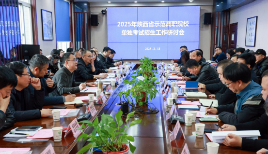 2月13日上午,2025年陕西省示范高职院校单独考试招生工作会议在我校召开。我校党委书记全卫强、副院长张永军,杨凌职业技术学院副院长蒋平江、陕西工业职业技术学院副院长梅创社、陕西交通职业技术学院副院长刘晶、西安铁路职业技术学院副院长腾勇、西安电力高等专科学校副院长梁小鹏、宝鸡职业技术学院副院长王博、陕西财经职业技术学院副院长雷旭、陕西能源职业技术学院副院长刘浩、咸阳职业技术学院副院长杨新宇、汉中职业技术学院副院长孟爱民以及西安航空职业技术学院、陕西铁路工程职业技术学院、陕西职业技术学院、延安职业技术学院招生及教务工作主要负责同志近60人参加会议。会议由副院长张永军主持。