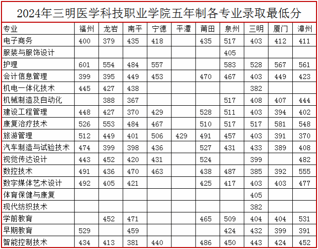 我院2024年福建省五年制高等职业教育录取分数参考(面向应届初中毕业生)