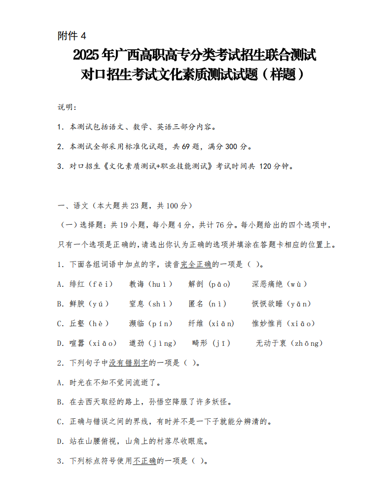 上一篇:广西2025年高职高专分类考试招生联合测试 对口招生考试职业技能测试试题(样题)