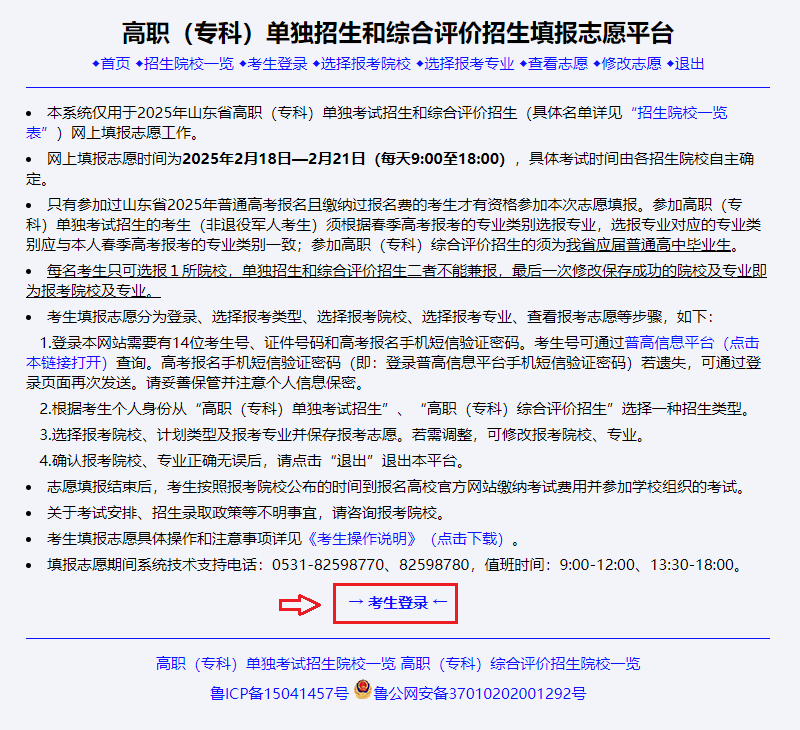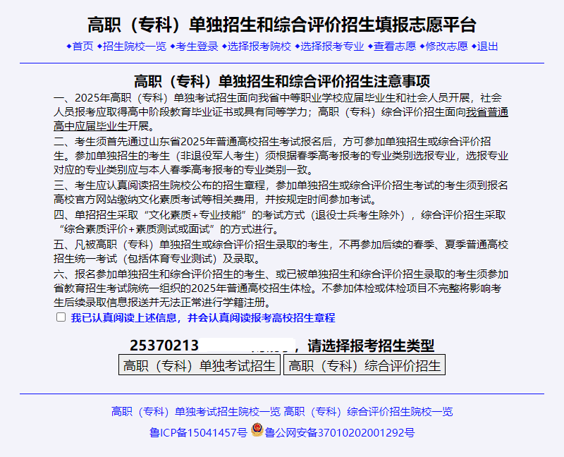 (一)考生须通过山东省2025年普通高校招生考试报名后方可参加我校专科单独考试招生或综合评价招生。