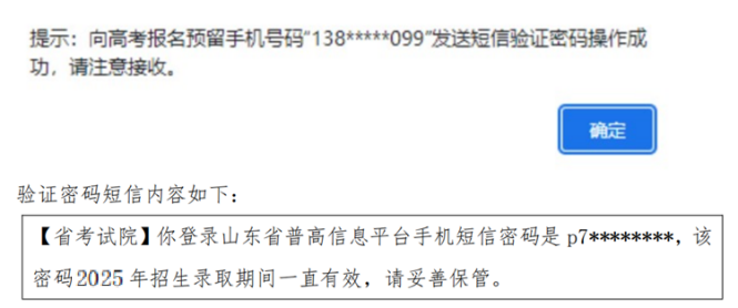 若遗失个人短信验证密码,可在登录页面输入考生号、报名证件号码、图片验证码、“点击发送”,系统提示: