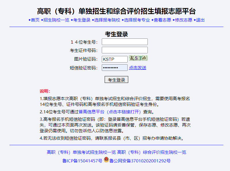 正确输入考生14位考生号、身份证号、图片验证码、短信验证密码,点击“考生登录”按钮验证考生身份。