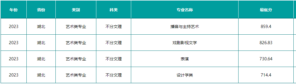 2023年武汉大学艺术类专业在湖北省录取分数线如下: