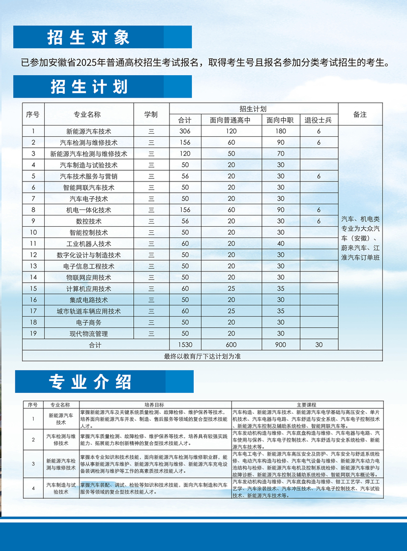 安徽汽车职业技术学院2025年分类考试招生简章